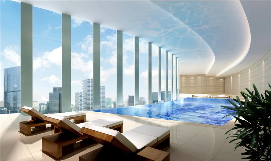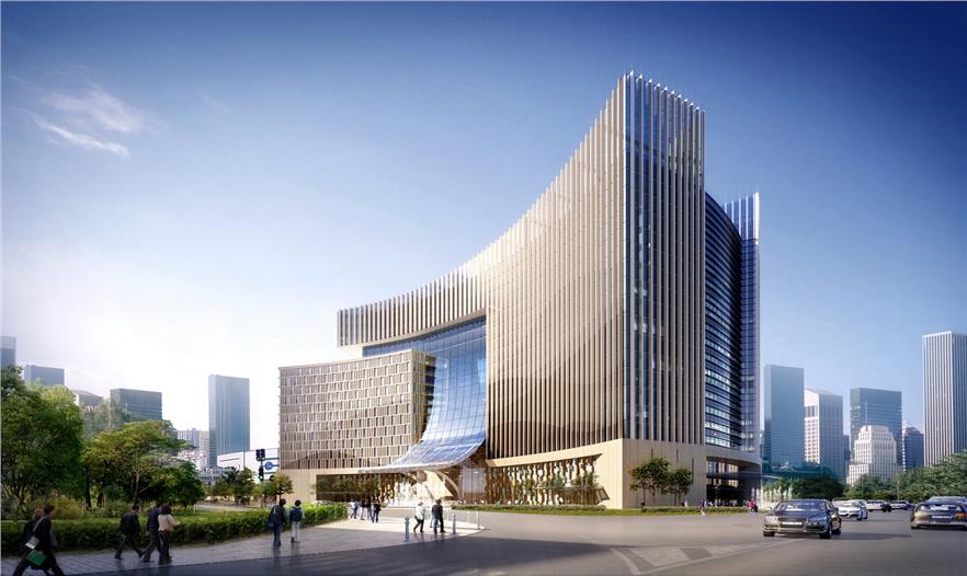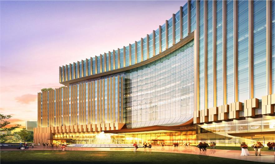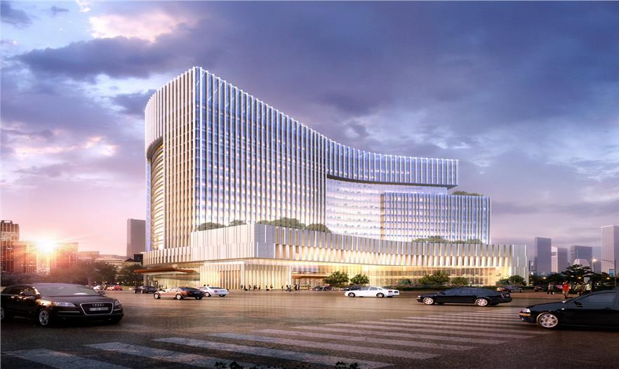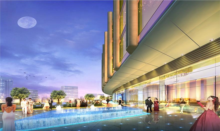 項(xiàng)目的建筑主體由酒店、辦公兩部分組成,東側(cè)為酒店,西側(cè)為辦公,中部設(shè)有一個(gè)面積約1500平方米,最高高度約30米的酒店大堂,南向有三千余平米花園美景,成為酒店公共空間的核心。酒店擁有5000平方米的高水準(zhǔn)會議設(shè)施,并擁有專屬屋頂草坪花園作為戶外商務(wù)活動的延伸。豐富多樣餐飲、酒廊、酒吧,為商務(wù)客人提供了便利與交流的空間。酒店標(biāo)準(zhǔn)層布局合理,每間客房空間尺度舒適,并通過合理幕墻設(shè)計(jì),使每間客房均擁有極佳城市景觀,規(guī)格豐富的高端套房布局在東部,更是擁有的絕佳的三面都市景觀。商務(wù)樓層布局在最高部,建筑退臺的造型,別具匠心地創(chuàng)造了一個(gè)帶有空中立體花園的高品質(zhì)行政酒廊,這將會帶給商務(wù)客人難忘的體驗(yàn)??罩衅呤赘叨?,還擁有酒店又一大空中的特色,空中無邊際游泳池、健身房、SPA水療中心,結(jié)合建筑頂部的造型,成為酒店另一個(gè)空間上的亮點(diǎn),帶給客人獨(dú)特體驗(yàn)。建筑的頂部西高東低,呈弧線型設(shè)計(jì)創(chuàng)造了優(yōu)美的城市天際線,突顯了建筑的整體形象。