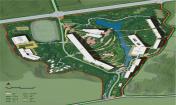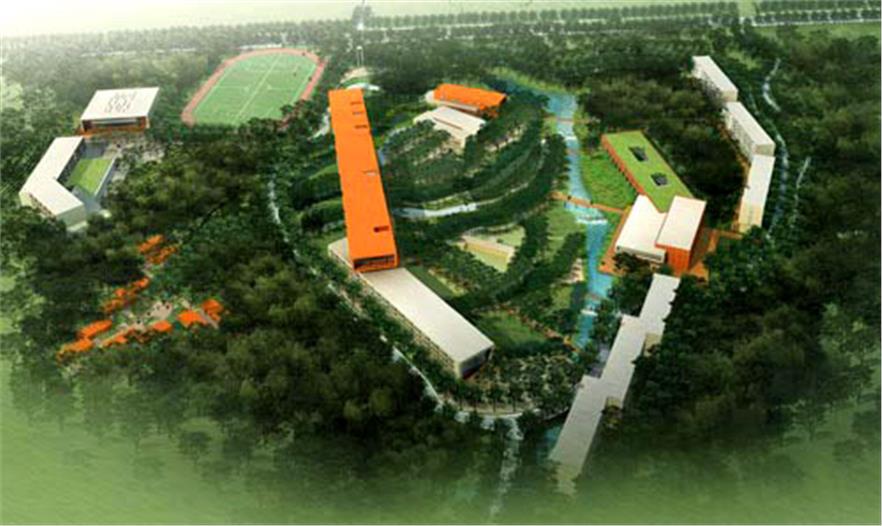 方案設(shè)計完整的保留了場地獨特的格局。主要建筑依山而筑,圍合中央谷地,使之成為未來校區(qū)主要活動空間,同時將沖溝加以利用,使之成為校園景觀廊道。