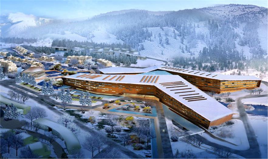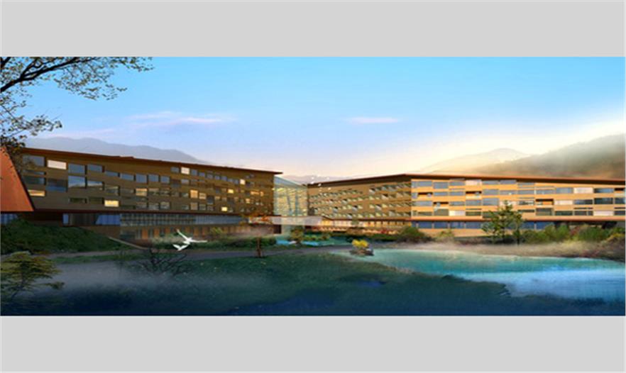 設計中我們尊重場地肌理進行建筑布局,同時,曲折的建筑體量給建筑本身帶來最大的觀景面;我們認為,酒店的體量與立面只是人們對它處于這樣一個環(huán)境下的認知,它應該符合場地肌理,應該適應這樣一個四季變化明顯的區(qū)域,在強調(diào)它的整體性的同時富有變化;而文化性元素我們認為應該低調(diào)存在于這方面,在近人尺度上體現(xiàn)文化元素更具親切感;所以我們選擇在公共空間去著力渲染文化氛圍。