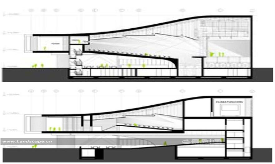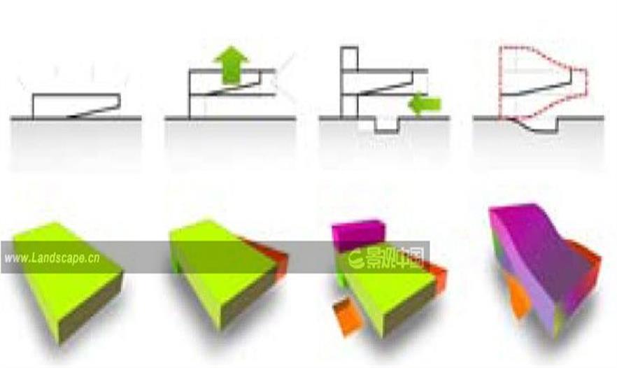 該項(xiàng)目采用一個(gè)單體建筑來優(yōu)化場地并使其融入在城市公園的環(huán)境中。 功能安排在被波浪形表皮包裹的四個(gè)相互連接的平面中。