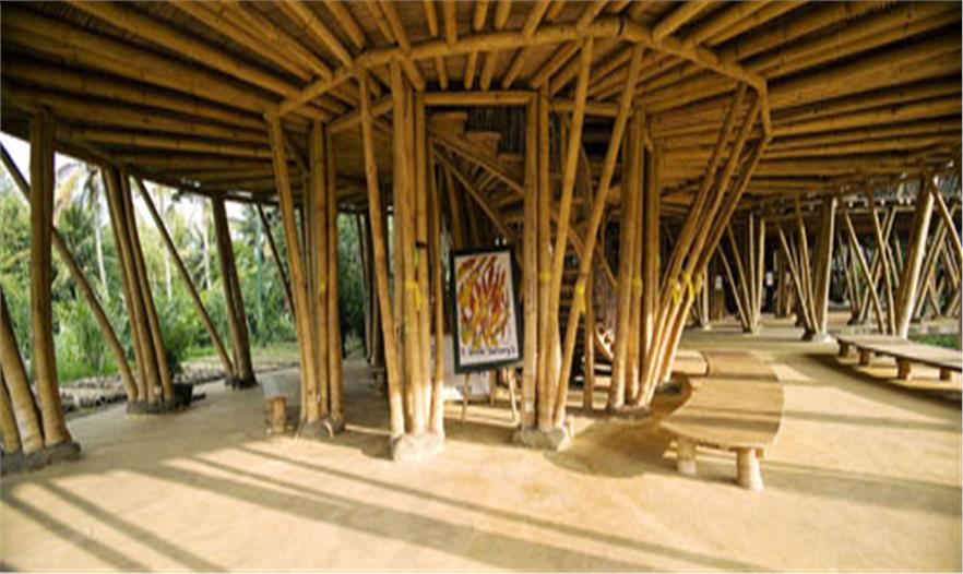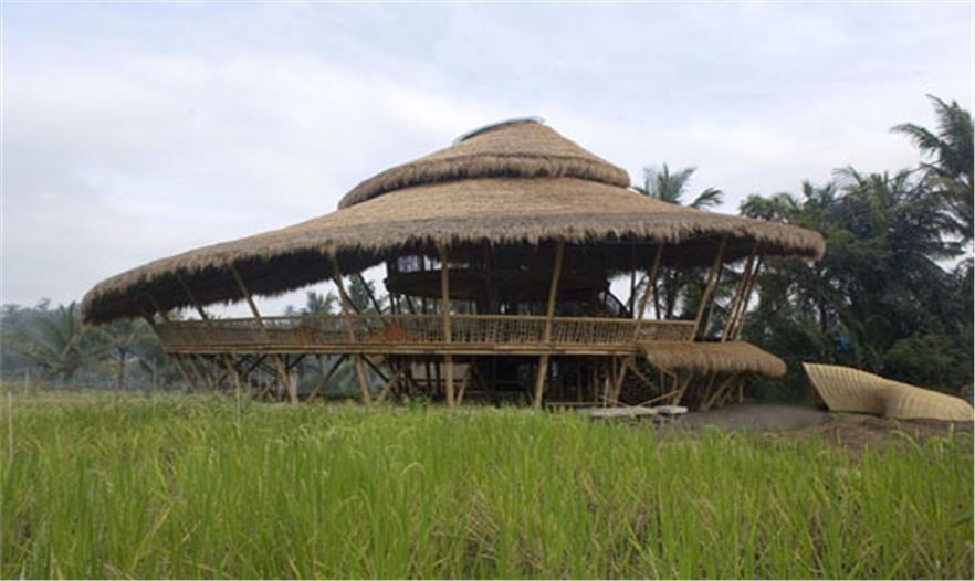 環(huán)保人士和設計師約翰和辛西婭·哈迪希望能推動社區(qū)可持續(xù)性發(fā)展。他們所做的其中一個工作是向人們展示怎樣用可持續(xù)的材料建造房屋,如竹子。他們建立了綠色學校和分支機構(gòu):Meranggi Foundation,通過向當?shù)胤N植水稻的農(nóng)民提供竹子種子來推進竹子種植;PT Bambu,一家以推動將竹子作為主要的建筑材料使用以取代對雨林的進一步消耗的營利性設計和建造公司。綠色學校,是PT Bambu建設的一個大型試驗場,它坐落在巴厘島的西邦卡賈橫跨Ayung河兩岸的可持續(xù)性校園中,在原生植物、樹木與可持續(xù)性有機花園共同生長的茂密叢林里。校園有多種能源供給,包括竹屑熱水和烹飪系統(tǒng),水電渦輪發(fā)電機和太陽能板;建筑有教室、體育館、集會場所、教師住房、辦公室、咖啡館和浴室等。一些在建筑上很重要的空間,從多層的社區(qū)集會場所到小很多的教室都是校園的特征。當?shù)赜每沙掷m(xù)的方法種植的竹子,以創(chuàng)新或試驗性的方式使用以證明他們在建筑上的可能性。最終,一個有著強烈教育背景的綜合性綠色社區(qū)試圖鼓勵學生們對環(huán)境和地球有更多的興趣、更多的參與和熱情。