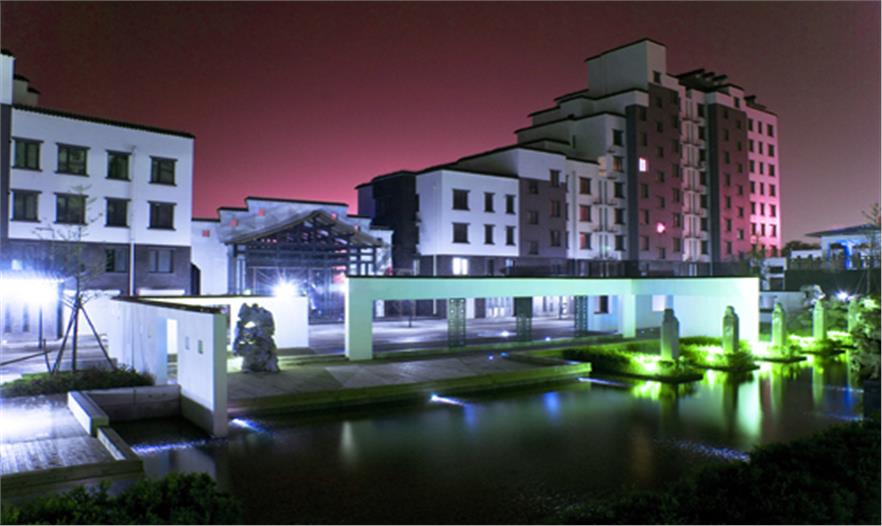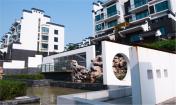 “四園”源自“文房四寶”代表了對(duì)歷史文化空間的轉(zhuǎn)換,分布在東西景觀中軸線上。白墻灰瓦精美雕飾的徽派景觀猶如中國(guó)水墨山水畫,固取名筆園,墨園,紙園,硯園。
