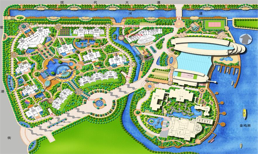 項目概況:項目位于蘇州工業(yè)園內,東南面臨金雞湖,南接香樟公園,北接現(xiàn)代大道,四周環(huán)水,自然環(huán)境優(yōu)越,是世界級高級精品社區(qū),與一個五星級酒店(中茵皇冠國際酒店)相結合,利用基地內水系發(fā)達,以水為骨架,主題是“水域天堂”。把它孕育成“生態(tài)型、科技型、人文型”景觀于一體的高檔豪華住宅區(qū)。景觀設計手法上既充分彰顯以人為本的理念,又表現(xiàn)出適應時代的現(xiàn)代感,體現(xiàn)出豪宅的品質和尊貴感。同時采用借景與引景手法,使城市景觀文脈在社區(qū)內得以延續(xù),營造出開窗觀湖、推門見林之效果,使整個社區(qū)融入金雞湖周邊的自然環(huán)境中,使“中茵•皇冠國際社區(qū)”在今天鋼筋水泥林立、蔽日遮天的狹窄的城市生活中,綻放出與眾不同得華彩,成為不可多得的理想居住地。