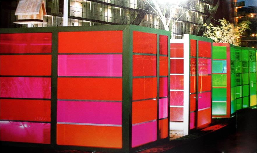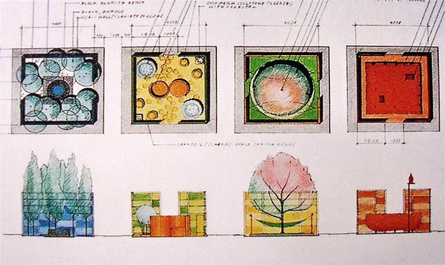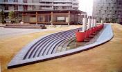 這個地方的材料是原本想采用粉紅大理石,這種大理石大體是灰色但是也有小塊的粉紅色,后來由于經(jīng)費的問題,這種材料不能被應(yīng)用。于是瑪莎用混凝土涂上粉紅色。在做這個決定的時候顯然女性比男性更為青睞粉色,因為設(shè)計所的女性都投了贊成票,而男性則都投了反對票。