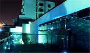 此處有大露臺,依水而建,露臺邊高墻數(shù)座開窗,游于高墻之間,可觀湖光山色。