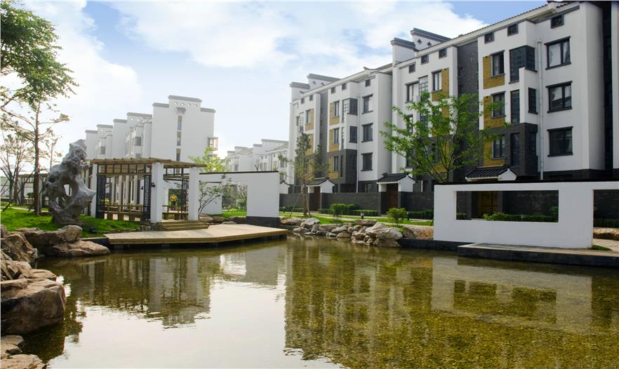 “四園”源自文房四寶,代表對歷史文化空間的轉換,分布在東西景觀中軸線上。白墻灰瓦精美雕飾的徽派景觀猶如中國水墨山水畫,固取名筆園、墨園、紙園。