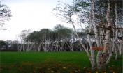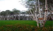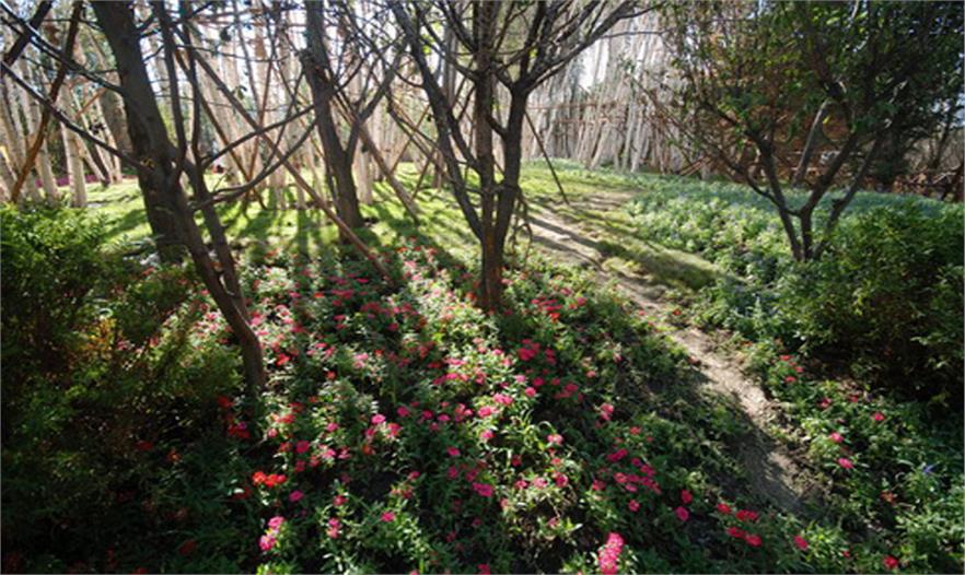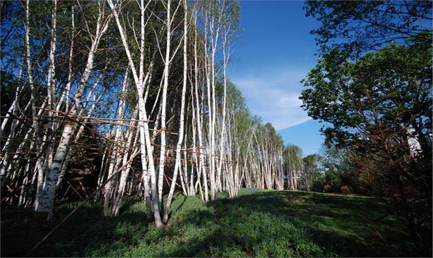 春天,稠李、家杏、李子和山荊子開花了,紅色粉的爭奇斗艷,讓社區(qū)花團錦簇;夏天,皂角和紅瑞木綠意蔥蘢,李子結(jié)果了,一顆顆藏在青翠的綠葉中,讓人饞涎欲滴;秋天,五角楓火一樣熱情,白樺樹也颯爽英姿;冬天,銀裝素裹中,銀中樺、白樺和樟子松傲然屹立在風(fēng)雪中,蕭條的冬天也格外美麗…...精細的植物設(shè)計演繹著四季之美,也演繹著歷史的年輪。