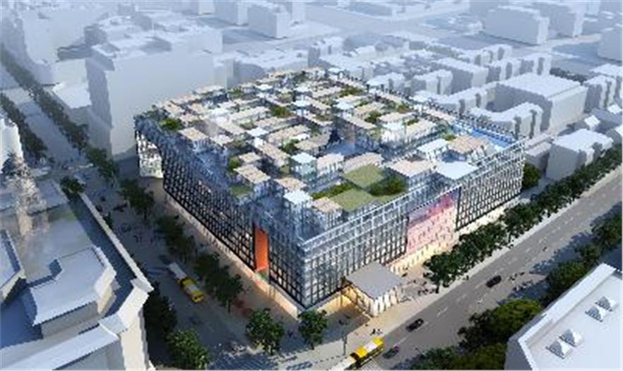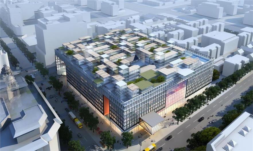 該項目的設(shè)計方法首先從不同層次的空間條件進(jìn)行考慮:社會、城市和建筑設(shè)計。項目目標(biāo)是創(chuàng)造都市生活的一個片段,在連續(xù)的序列中創(chuàng)建各種彼此對立的活動和用途。這個提議基于“建筑物擁有五個立面”的理論,同時符合場地面積的要求,內(nèi)部容納零售、酒店及公寓,以此產(chǎn)生一個室內(nèi)空間。吹拔空間系統(tǒng)采用了將陽光和周圍景致帶進(jìn)立方體的空間構(gòu)型。