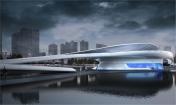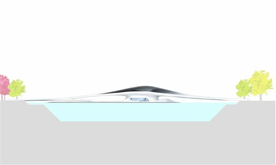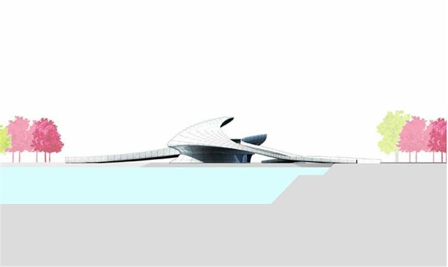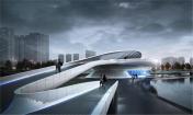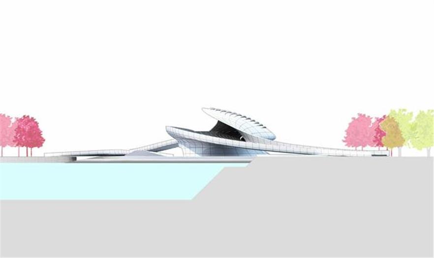 The important position, jutting out over the central water body, encouraged a dynamic design response. The design team has envisioned a signature iconic structure that is attractive, has a flowing modern form expressing the importance of Wuxi’s relationship with water and is functional in its connections to the island, foreshores and allowing boats to pass underneath its elevation.