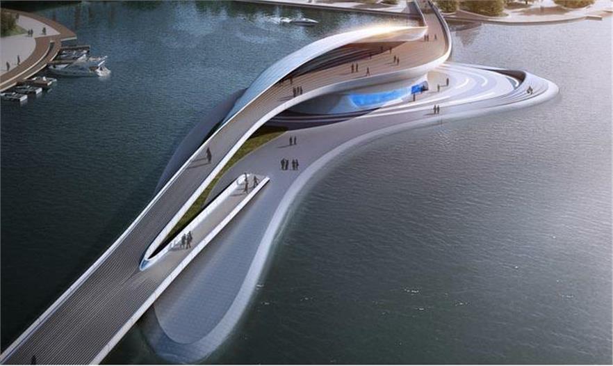 L&A Design Group has developed an exciting contemporary bridge design as an architectural highlight of Wuxi Xidong Park, located in Jiangsu province, China. The bridge is planned to be the main connection between the north and south foreshores of the parks lake and allows visitors access to a small island destination that commands views over the water as well as café facilities and pocket gardens.