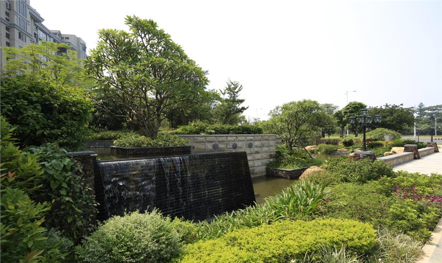 設(shè)計師配合周邊和地塊自身的山形水勢,選用自然、有機的造景材料,重點區(qū)域以細(xì)節(jié)的刻畫和新型高端材料的運用提高檔次,居住區(qū)域強調(diào)私密性、增強安全感,休閑娛樂區(qū)域則通過水系與綠色植物的銜接,強調(diào)自然生態(tài)的低碳理念,成功打造出一處遠(yuǎn)離鬧市喧囂、水綠交融的高端社區(qū)。