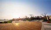 濱江風(fēng)情商業(yè)街和沿江休閑帶作為北岸的展示面,在整個(gè)項(xiàng)目中有著舉足輕重的地位。為了呼應(yīng)項(xiàng)目主題,景觀設(shè)計(jì)師以“跳躍的線,流動(dòng)的海”作為景觀設(shè)計(jì)主題,通過(guò)富有動(dòng)感的“漣漪”廣場(chǎng)和船形概念鋪裝,賦予景觀面朝大海般的通感體驗(yàn)。在1.3公里沿江休閑帶岸線的設(shè)計(jì)中,也以波浪型的線條進(jìn)行設(shè)計(jì),與景觀主題更加貼合,各種獨(dú)具匠心的親水平臺(tái)、景觀小品和休閑設(shè)施,絕對(duì)讓人流連忘返。位于入口展示區(qū)的售樓部建筑外觀時(shí)尚現(xiàn)代,設(shè)計(jì)師以鏡面水景將其四周?chē)?,使這棟建筑像是從水中生長(zhǎng)出來(lái)的一樣。