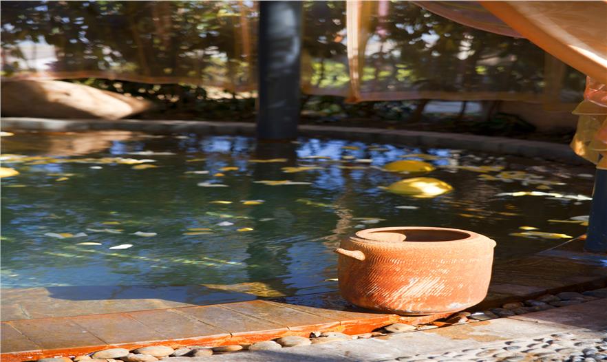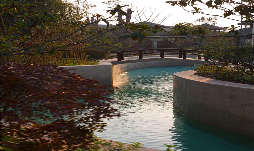 里下河文化及江南水鄉(xiāng)文化——中式古亭可說是其中一個(gè)比較明顯的特色;設(shè)計(jì)中利用古亭結(jié)合溫泉泡池,既可納涼避風(fēng),又營造了思古徜徉的文化意境。