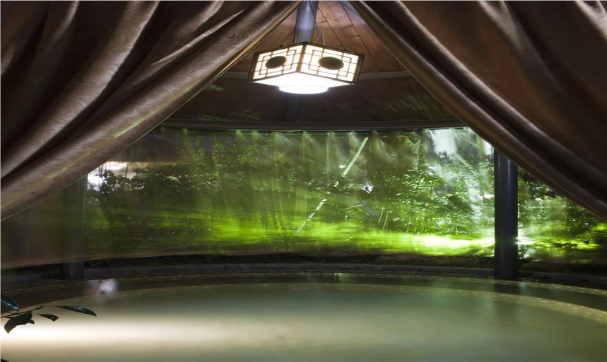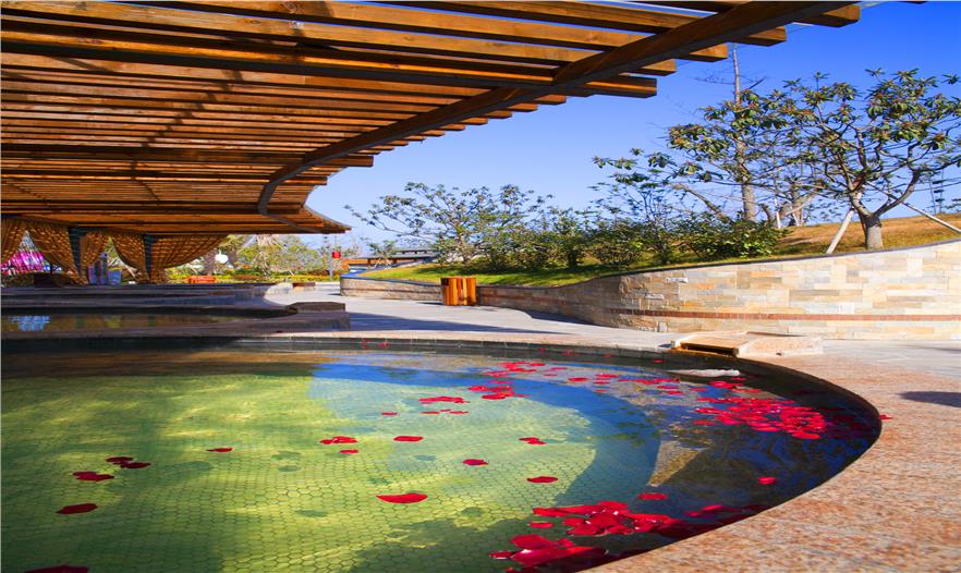 詩詞歌賦——我們努力描繪文人騷客描畫的江南美景,每一處溫泉泡池均根據(jù)詩詞來命名,如,憶江南,采桑子,蝶戀花,浣沙溪等等。并利用當(dāng)?shù)厝藢?duì)于5這個(gè)數(shù)字的鐘愛,設(shè)計(jì)了諸如五子浴(生姜,女貞,白蒺藜,白芨,朱砂),五音浴(宮,商,角,徴,羽),五果?。ㄌO果,木瓜,檸檬,菠蘿,椰子),五花?。ㄜ岳颍栈?,桂花,玫瑰,郁金香)等泡池。
