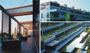 本項(xiàng)目在建筑到室內(nèi)及景觀一體性改造的同時(shí),進(jìn)行節(jié)能及建筑生態(tài)的技術(shù)改造,使建筑以低耗、節(jié)能的新面貌重新投入使用。通過屋頂綠化、垂直綠化、景觀水池等多種生態(tài)綠化技術(shù),形成生物氣候緩沖帶、改善建筑微環(huán)境,將創(chuàng)意與生態(tài)完美結(jié)合,創(chuàng)造綠色生態(tài)建筑?! ?br />