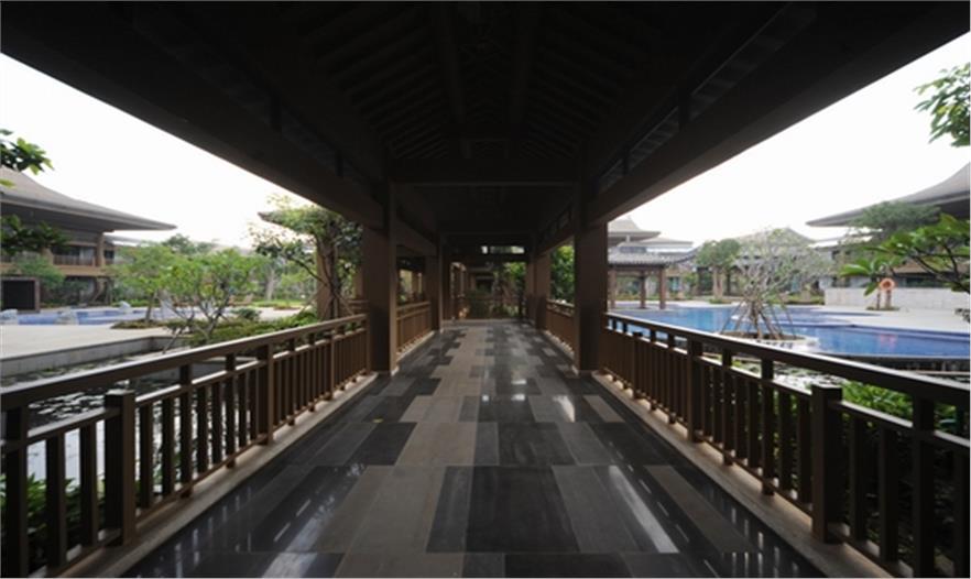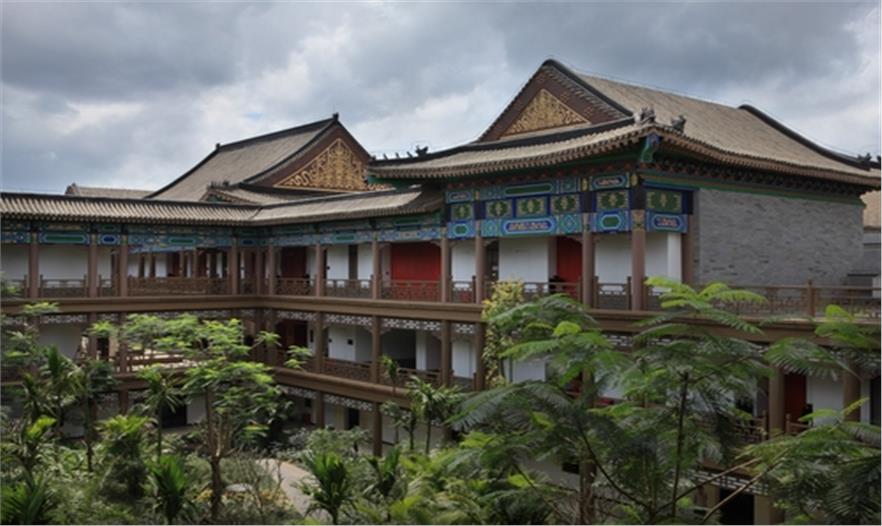 本酒店為海南唯一的五星級(jí)中式皇家園林酒店,服務(wù)主要面向享受高層次生活體驗(yàn)的會(huì)議群體,軍政及事業(yè)單位招待及宴請(qǐng)。建筑為改擴(kuò)建項(xiàng)目,原有建筑為仿古風(fēng)格,設(shè)計(jì)有客房,餐飲,娛樂(lè),員工后勤服務(wù)區(qū)等功能,新建筑采用現(xiàn)代古建筑風(fēng)格,擴(kuò)建部分設(shè)有會(huì)議,客房,入口接待廳等功能。整體布局采用中式王府大院,總平面呈嚴(yán)謹(jǐn)?shù)闹休S線對(duì)稱式布局,以中式園林為主導(dǎo),強(qiáng)調(diào)建筑的中軸線以及群落感,突出傳統(tǒng)意境在空間院落上的存在。