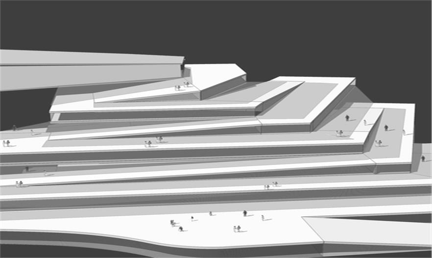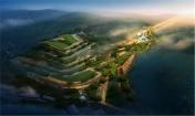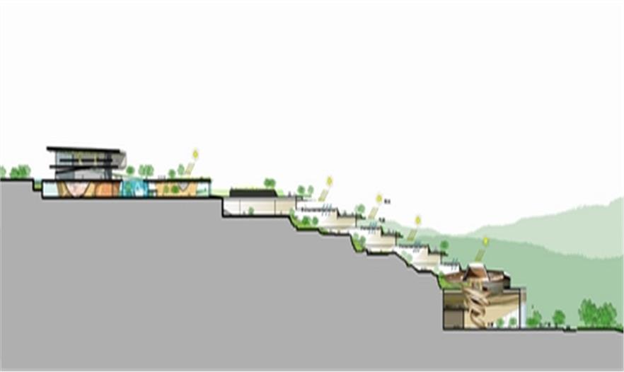 項(xiàng)目用地位于中國歷史上最早被皇家欽定為觀音道場的廣德寺,酒店的設(shè)計(jì)靈感正是源于拜塔禮佛。依山而建,順勢而生的建筑形態(tài)宛如一座橫臥于山坡上的佛塔,沿酒店表面的禪徑拾級而上的過程,即演繹成為蹬塔禮佛修身養(yǎng)性的過程。酒店融入自然之中,與對岸的廣德寺遙相輝映,成為參禪禮佛過后修身養(yǎng)性的最佳場所。