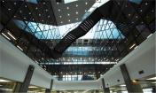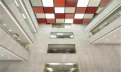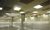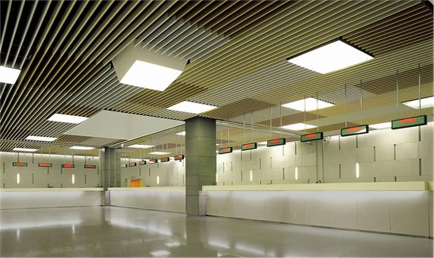 The top of the customs hall, adopts the characteristics of colored aluminum strips, and form plane patterns. On color side, beige, white and brown color fills the office space with warm mood.