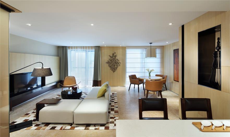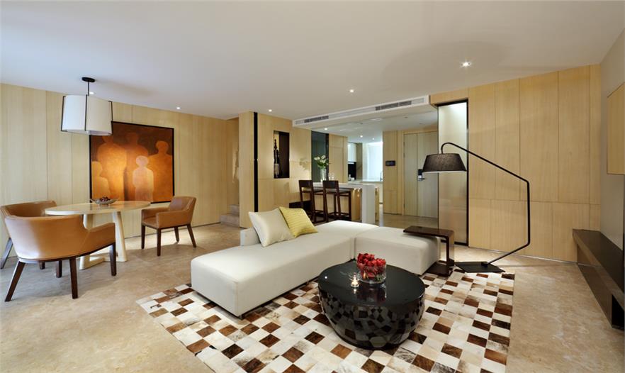 Suite#140戶型:空間以簡約歐式為基礎,其設計哲學追求深沉里顯露尊貴、典雅中浸透豪華,并期望這種表現(xiàn)能夠完整地體現(xiàn)出現(xiàn)代政界商務精英們的心理趨向。
