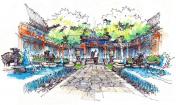 設(shè)計(jì)過(guò)程:根據(jù)該項(xiàng)目地理位置,自然環(huán)境以及自身特有特點(diǎn)。將其定位一處以東方古典園林藝術(shù)為核心思想的設(shè)計(jì)作品。設(shè)計(jì)的關(guān)鍵在于“聚景”,如何在有限的范圍內(nèi)將山、水、花木聚集一起,形成園內(nèi)自然銜接和多層次的觀賞景點(diǎn)。設(shè)計(jì)師運(yùn)用古典園林設(shè)計(jì)手法,將山、石、植物、水景、建筑作為設(shè)計(jì)基本要素??臻g景物之間講究對(duì)比與調(diào)和,對(duì)稱與均衡,統(tǒng)一與變化,形成了特有的韻律節(jié)奏。園內(nèi)景觀分為:古樹迎賓,長(zhǎng)青庭院,紅梅庭院,玉蘭花庭四大區(qū)域。寄情于山水是東方人內(nèi)心深處的情懷,由此形成了的“模山范水”的設(shè)計(jì)手法。前院水景和山石的布置很好地體現(xiàn)了這一點(diǎn),設(shè)計(jì)師以蒼井有力的山石體現(xiàn)心系天下的胸懷,將修身省物化為寧?kù)o清澈的流水,初入庭院,便能賞山之秀閱水之靈,獨(dú)具特色的山水構(gòu)造引人入勝。后院連接接待區(qū)與居住區(qū),在滿足功能的前提下,考慮到室內(nèi)觀景視線。布局以方正的四合院為基本形態(tài),在十字甬道上增加變化擴(kuò)大活動(dòng)空間。從形式到自然,也符合其功能,由公共到私密的變化。石獅,屏風(fēng),宮燈,馬樁,水榭倒影使人仿佛進(jìn)入了龍宮仙境。人立其前如在畫中游。清風(fēng)徐來(lái),暗香流影。這種以看似“鏡花水月”,卻比現(xiàn)實(shí)生活的月和花更能引起人的美感。這是由于藝術(shù)和現(xiàn)實(shí)生活距離產(chǎn)生的朦朧感。也正是這種朦朧感,讓人產(chǎn)生無(wú)限的聯(lián)想,享受更多的美感。在植物設(shè)計(jì)上,金桂、玉蘭、牡丹、海棠等植物的吉祥寓意,傳達(dá)了東方人對(duì)大自然的感情流露和對(duì)美好生活的向往。整個(gè)庭院的設(shè)計(jì)正如東方人含蓄內(nèi)斂的個(gè)性,景觀層次上層層遞進(jìn),步移換景漸入佳境。達(dá)到自然、恬靜、優(yōu)雅的藝術(shù)特色。