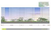 該項(xiàng)目區(qū)域中間一條南北向的市政道路將小區(qū)分為兩個(gè)部分,兩個(gè)部分分別根據(jù)其建筑類型設(shè)計(jì)兩條景觀次軸線,兩個(gè)中心景觀節(jié)點(diǎn)以及部分主要景觀節(jié)點(diǎn)和次要景觀節(jié)點(diǎn),最大程度上豐富景觀的層次感和豐富性,滿足不同區(qū)域與人群對(duì)景觀的功能性需求,同時(shí),兩個(gè)部分以一條景觀主軸線貫穿,既保證不同區(qū)域的性格特征又使其保持整體的統(tǒng)一完整性。在縱向上,通過對(duì)不同建筑架空層的出入口、綠化趨向及植物圍合空間的設(shè)計(jì),滿足不同人群對(duì)觀景展示、親近自然和休閑娛樂的功能性需求。