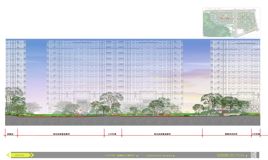 從項(xiàng)目的現(xiàn)狀出發(fā),我們采用的是一位自然為基調(diào)的設(shè)計(jì)理念與手法,充分利用八方山的基地自然優(yōu)勢(shì),無(wú)論是主體園路還是景觀走勢(shì)都順應(yīng)了山的肌理,讓人猶如置身大自然之中,愉悅舒適。在整體自然基調(diào)的統(tǒng)籌與規(guī)劃下,節(jié)點(diǎn)設(shè)計(jì)采用現(xiàn)代設(shè)計(jì)手法,例如形式流暢的橢圓形廣場(chǎng),開闊敞亮的草坪空間、精致優(yōu)雅的水景和精簡(jiǎn)大方的景觀小品,這些現(xiàn)代的設(shè)計(jì)手法,順應(yīng)當(dāng)代人的審美品趣,即簡(jiǎn)潔大氣,又優(yōu)雅實(shí)用。而在小區(qū)入口處于商業(yè)街等重要的節(jié)點(diǎn)和區(qū)域則巧妙的采用ART DECO 的設(shè)計(jì)風(fēng)格,其趨于幾何化的構(gòu)圖和簡(jiǎn)潔利郎的形式感,無(wú)論在視覺上還是構(gòu)圖上都能夠給人以一定程度上的統(tǒng)一感和精致感,迎合不同節(jié)點(diǎn)區(qū)域的特殊需求,做到即簡(jiǎn)潔舒適,又現(xiàn)代大氣。