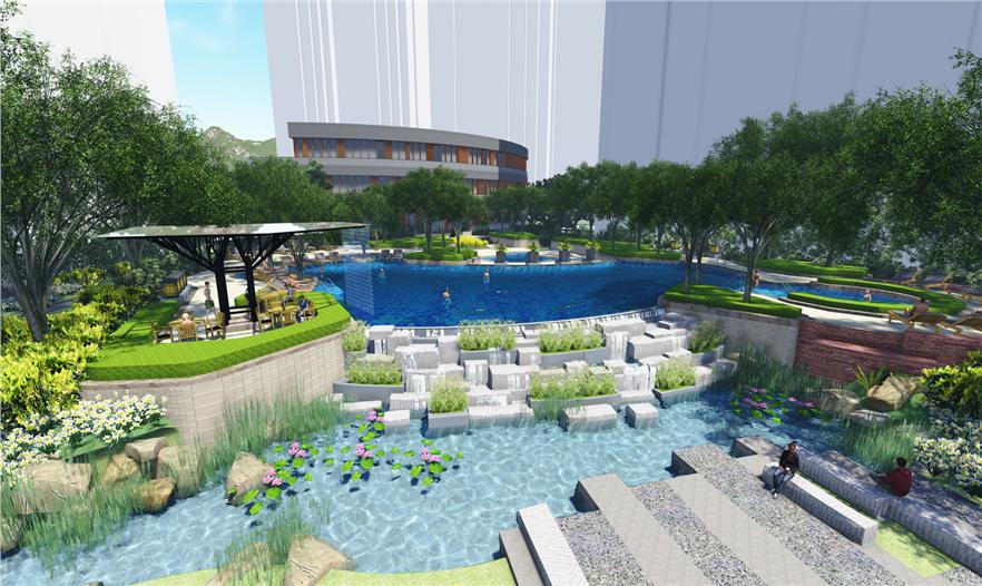 依據(jù)規(guī)劃和建筑的解讀,山在該項(xiàng)目中起著重要的作用,并在基地中起著強(qiáng)大的生命力量。無(wú)論是山體的梯田紋理、疊水巖石,亦或是自然植被等,其所包含的元素都成為連接景觀設(shè)計(jì)中硬質(zhì)結(jié)構(gòu)和軟質(zhì)配景的重要語(yǔ)言。該項(xiàng)目有三個(gè)明顯的區(qū)域,聯(lián)排別墅、中心建筑及周邊建筑,其高差、視線及天際線對(duì)景觀結(jié)構(gòu)層次的影響十分重要。建筑本身的不同類型定義了其本身的價(jià)值以及使用人群,因此每個(gè)區(qū)域景觀節(jié)點(diǎn)定義應(yīng)通過細(xì)部景觀來(lái)營(yíng)造和睦的關(guān)系,正確界定公共和私人的使用范圍界限,力求以山水之情和時(shí)代元素打造自然、舒適、現(xiàn)代、時(shí)尚的宜居家園。