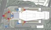 次要廣場為樹池周圍有休息桌椅的公共大巴等待區(qū)服務(wù)