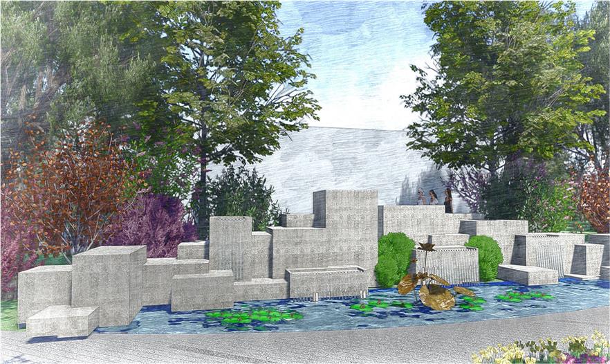 玲瓏疊翠:玉階生白露,玲瓏望秋月。靈活設計線性場地,人為制造高差;栽植松竹等寓意植物,營造“隱”的意境。