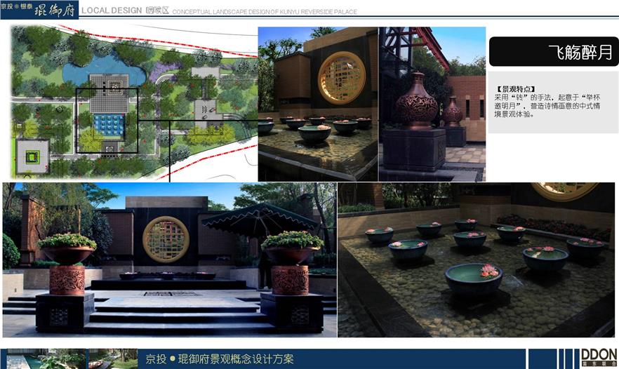 飛觴醉月:采用“轉”的手法,起意于“舉杯邀明月”;營造詩情畫意的中式情境景觀體驗。