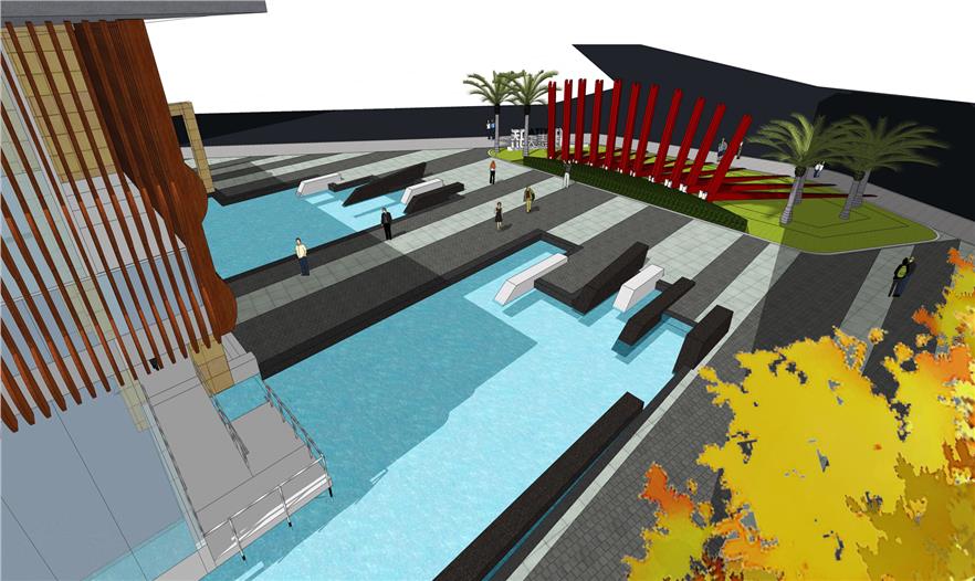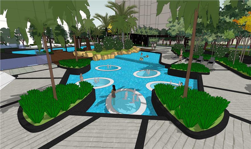 公共泳池 下沉庭院 – 公共泳池的3個景亭子成為整個區(qū)域的亮點,遠處的水吧或酒吧成為售樓處建筑向外看的對景。泳池的水可以和下沉庭院通過跌水的方式連接,增加上下豎向的景觀聯(lián)動。體驗豐富多彩的度假風情。