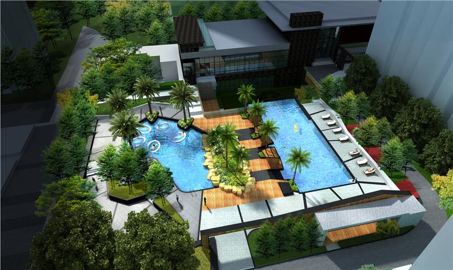 水療池 – 橢圓形的水療池讓人在熱帶風情的椰島下面盡情享受度假的放松心情,相鄰的兒童淺水區(qū)活躍著孩子們的歡笑,完善的水景服務設施彰顯出整個樓盤的高對特質(zhì)。