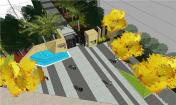 泳池入口入口的橫跨結構連接著水吧,大氣,統(tǒng)一,和售樓處的長方形展開立面呼應。建筑景觀的統(tǒng)一。