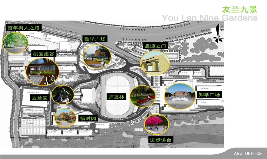 有文化品質(zhì)的校園環(huán)境:集合時代背景和地域特色,容古納今,創(chuàng)造出獨特的校園文化氛圍.