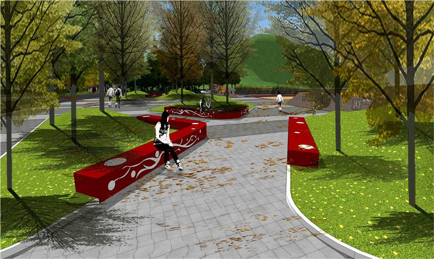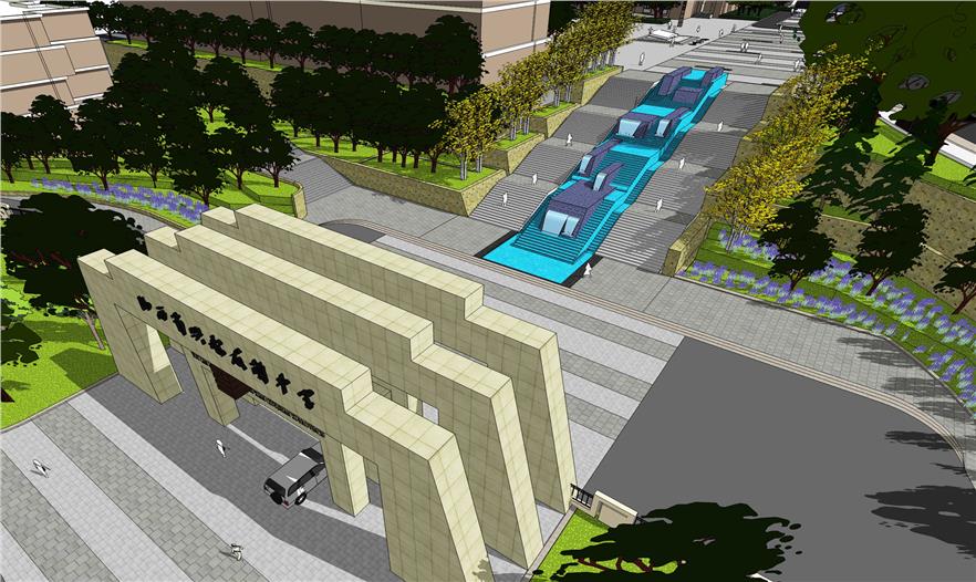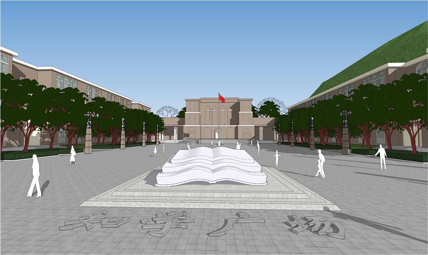 在增大綠化景觀面積的同時,考慮文化景觀的引入。注重人的使用性和參與性,使“文化設(shè)計“真正融入校園空間。