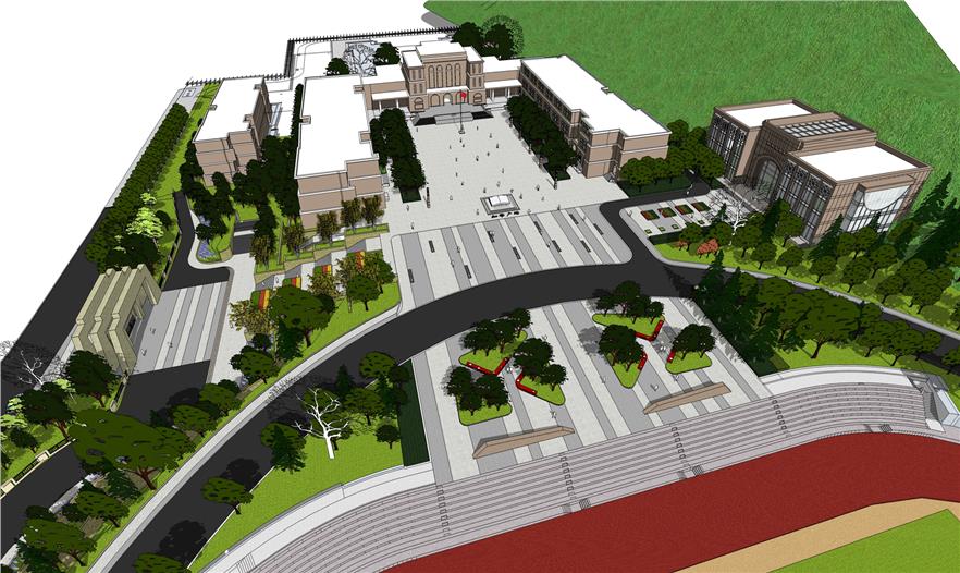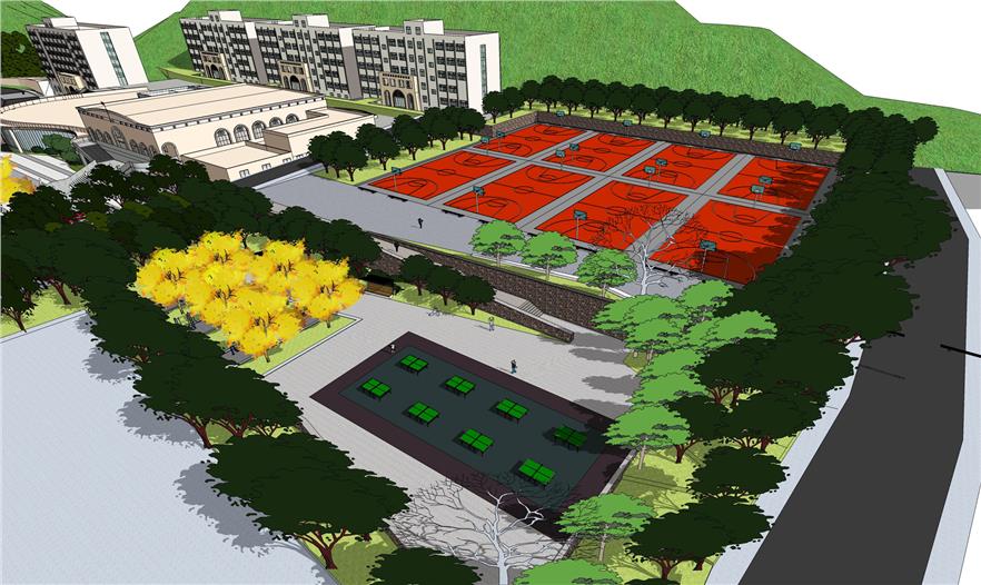 現(xiàn)有場地的綠化面積過少,對校園環(huán)境的影響較大,所以需曾加必要的綠化空間,做到“大空間,大綠化”的整體效果。