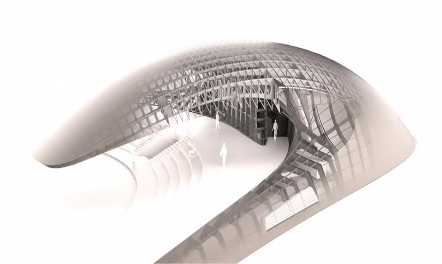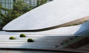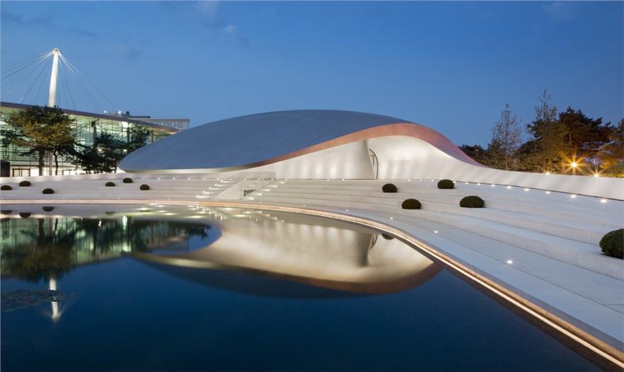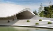 這是由HENN Architects事務(wù)所設(shè)計(jì)的位于德國(guó)沃爾夫斯堡汽車城的保時(shí)捷展館項(xiàng)目,有機(jī)的造型定義了湖邊獨(dú)特的形象,它與大眾展館遙相呼應(yīng),為參觀者提供占地400平方米的展覽和演講面積。它獨(dú)特的弧線將成為景觀之中出眾的地標(biāo)。弧形的線條和令人嘆為觀止的彎曲與延展形成動(dòng)感的結(jié)構(gòu),但同時(shí)又不失謙虛和低調(diào)。無(wú)光的不銹鋼組成建筑的外表皮,它為建筑塑造統(tǒng)一的形象,但同時(shí)又能在天氣和光線變化的情況下發(fā)生持續(xù)的變化。展館入口頂部是二十五米長(zhǎng)的懸挑,它向前延展一直到達(dá)水邊,下面形成開(kāi)放的聚集空間。這個(gè)空間視覺(jué)上與周圍景觀相通,形式上又起到了隔音的效果,從而營(yíng)造出一個(gè)安靜適宜的室外環(huán)境。
