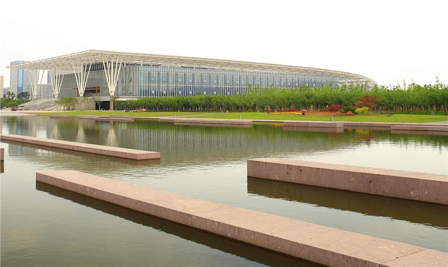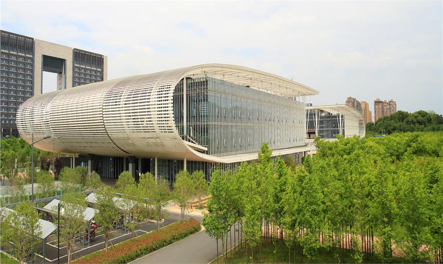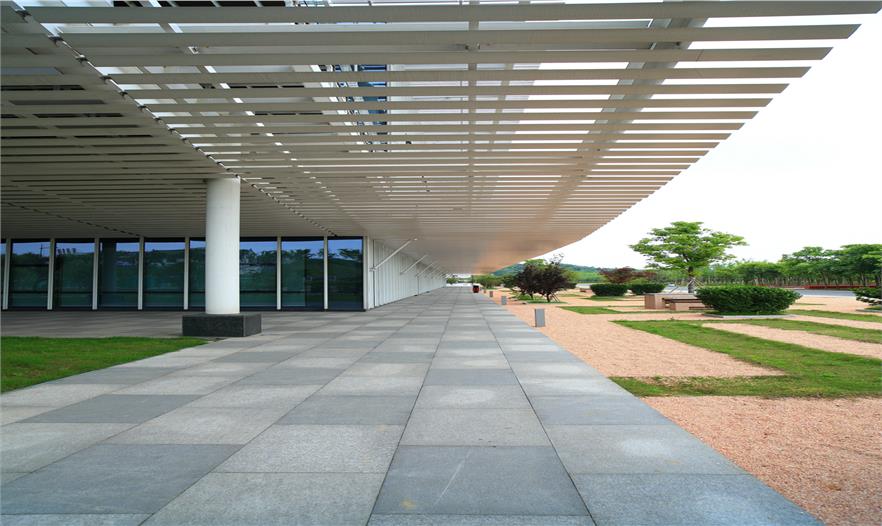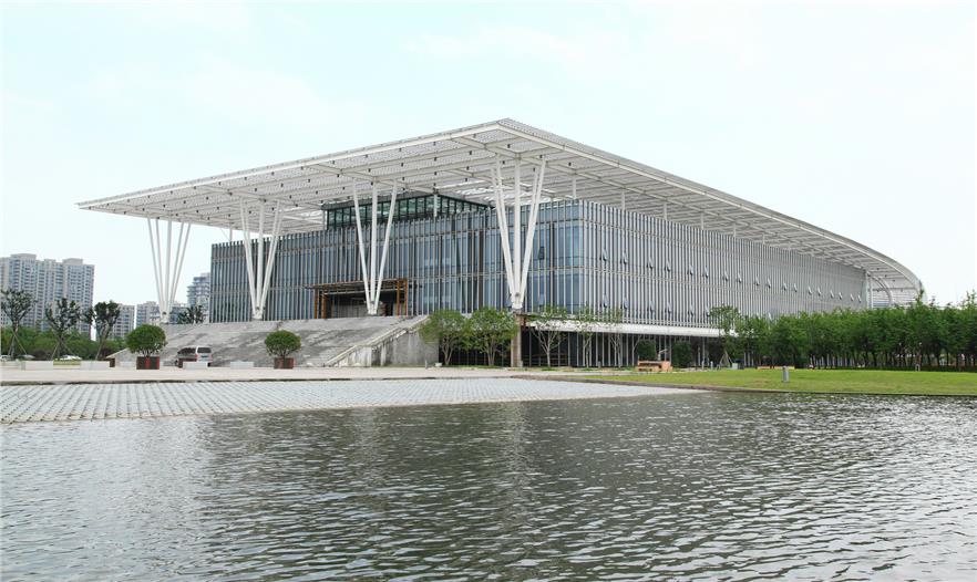 德清文化展示中心與圖書館位于德清行政中心區(qū)南側(cè),北至千秋街,西鄰曲園路,東鄰云岫路,南臨市民廣場。建設(shè)總用地面積36000平方米。總建筑面積2.85萬平方米。場地的東側(cè)為展示館,地上建筑面積10054㎡,西側(cè)為圖書館地上建筑面積10234㎡,地下建筑面積3969㎡。建筑東西兩部分地下一層、地上三層。一層層高4.8米,其他層層高4.5米,建筑總高度18.95米。