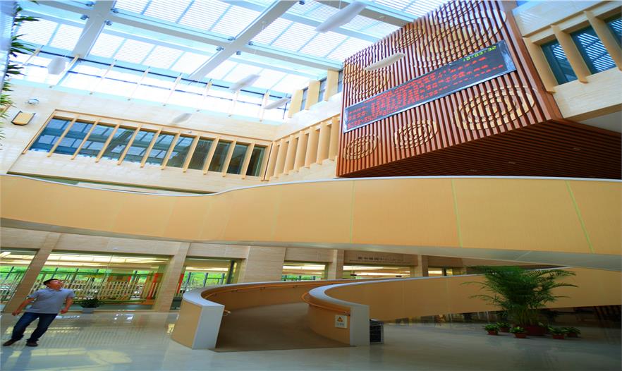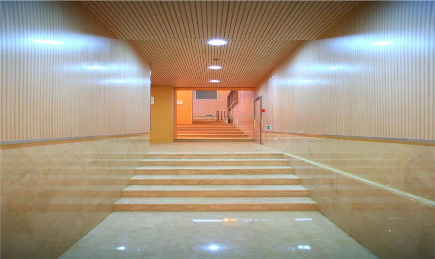 建筑左右對稱,強(qiáng)調(diào)軸線,使建筑南北區(qū)室外公共空間得以連續(xù)。