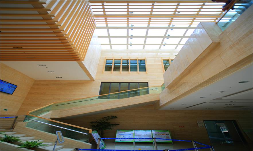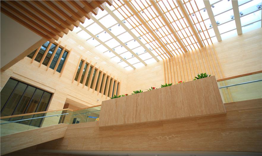 基于綠色建筑的設(shè)計理念,兩個建筑通過屋頂?shù)恼陉柛駯诺拇竺娣e使用、多個通高中庭的插入、屋頂?shù)牟晒饧白匀煌L(fēng)等一系列低技術(shù)的節(jié)能設(shè)計,在南方的濕熱氣候下,營造出了舒適的室內(nèi)空間,同時呼應(yīng)了作為市政中心的嚴(yán)謹(jǐn)和規(guī)整。