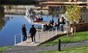 該校區(qū)的主干道,名叫Corso,其連接主餐廳Universum和學(xué)生單元,在以橋梁的形式穿過湖泊。窄窄的陰涼步道和被濃綠植被包圍著的緩流小溪都在于默奧這座北方城市營造出異國情調(diào)。