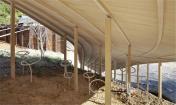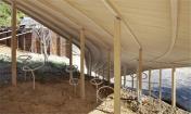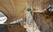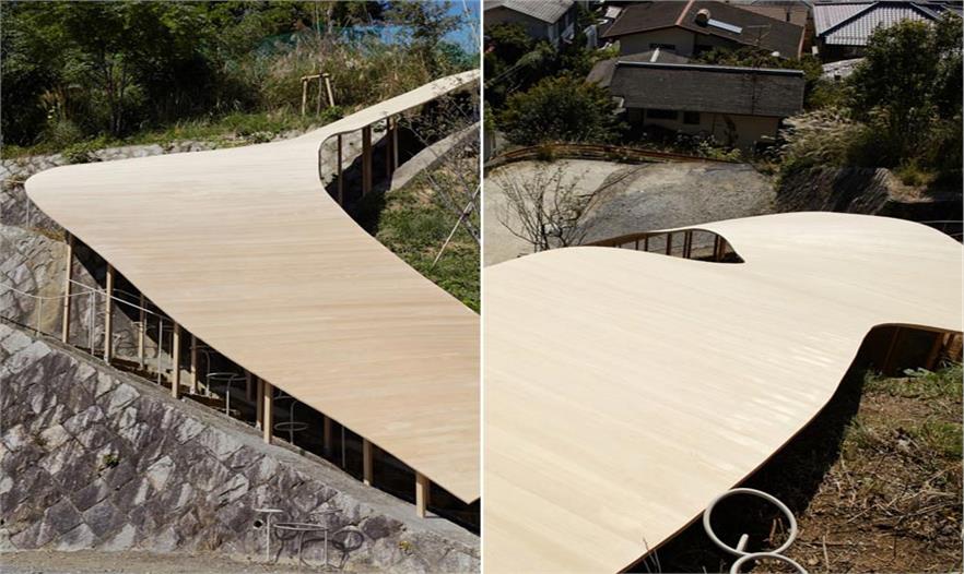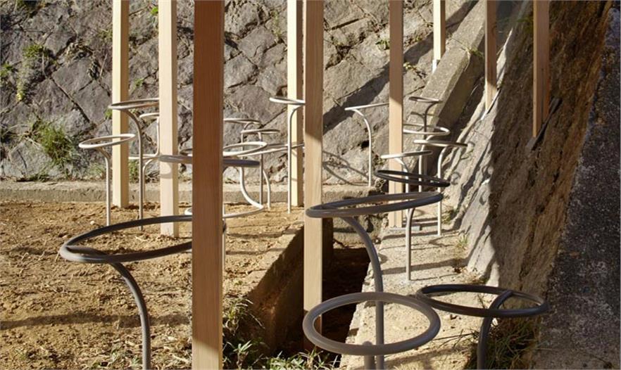 西澤立衛(wèi)的大多數(shù)建筑都像是明亮,寬敞和通透的花園,室內(nèi)植物模糊了內(nèi)部和外部空間的邊界并增加歡快的色彩。但對(duì)于一個(gè)依據(jù)山勢(shì)的木結(jié)構(gòu)之下的背陰空間,兩位設(shè)計(jì)師認(rèn)為內(nèi)部裝置像菌類會(huì)更合適。
