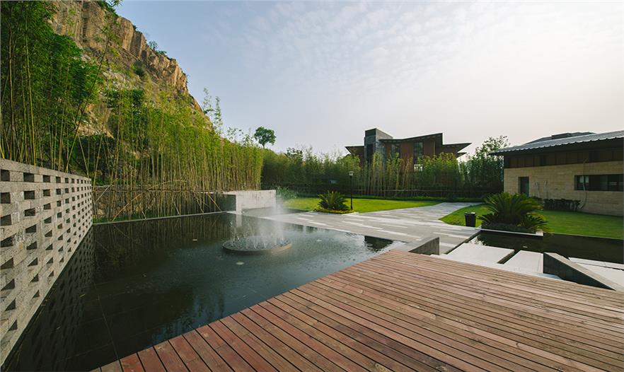 專案環(huán)繞東擔(dān)山布置,其山體西側(cè)為礦山斷崖。設(shè)計(jì)利用自然山地的先天條件,將獨(dú)特的“隱山——巖SPA度假小鎮(zhèn)”理念引入其中,打造具有標(biāo)志性的生態(tài)養(yǎng)生公園。得天獨(dú)厚的地域性特征,加之設(shè)計(jì)賦予其健身、養(yǎng)生的功能,構(gòu)成項(xiàng)目的整體內(nèi)涵基調(diào),也是其區(qū)別于其他項(xiàng)目的一大亮點(diǎn)。