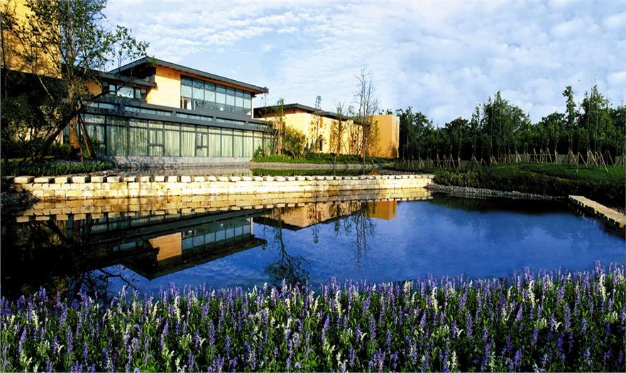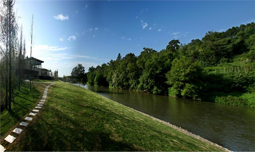 設(shè)計(jì)團(tuán)隊(duì)將自然河道引入設(shè)計(jì)中,利用濱河綠化帶,打造鄉(xiāng)村牧歌式的外圍景觀,同時(shí)梳理水系,強(qiáng)化“長橋”美景。長橋郡會(huì)所設(shè)置在楊柳河、碾河交匯處,水系沿著牧馬山麓順勢而下,別墅沿緩坡延伸排列,與林蔭、道路高低錯(cuò)落,共同形成純粹的“自然”風(fēng)景。