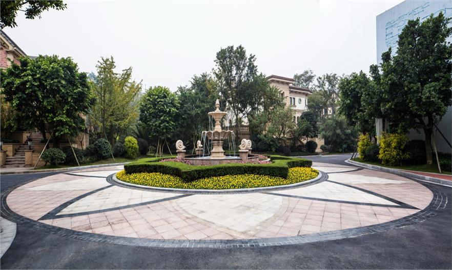 區(qū)域內(nèi)規(guī)劃有兩條景觀大道,分別是貫穿東西和貫穿南北方向的兩條主干道。南北方向的景觀大道起著聯(lián)系社區(qū)與酒店商業(yè)區(qū)的作用,東西方向的景觀大道起著聯(lián)系市政道路的作用。設(shè)計(jì)團(tuán)隊(duì)考慮到兩條景觀大道作為項(xiàng)目的主要交通線路,人車流量相對較大,故采用具有一定形象展示功能的道路景觀,通過植物造景和設(shè)置景觀小品來塑造氛圍恢宏的景觀大道。