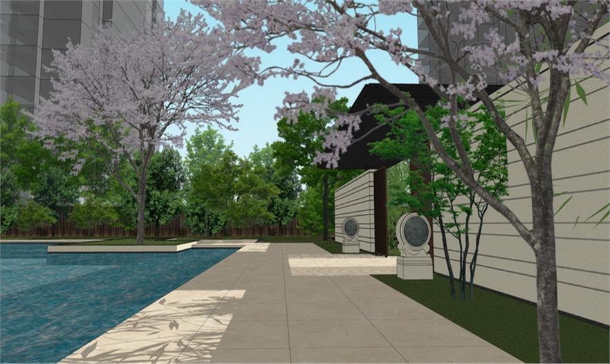 依據(jù)本案的規(guī)模和建筑形態(tài),建筑方案所表達(dá)的外觀風(fēng)格,形式及特征,確定本案風(fēng)格為:新中式景觀。形成于中式園林景觀基礎(chǔ)之上,兼容現(xiàn)代簡(jiǎn)約設(shè)計(jì)手法,具有相當(dāng)高的環(huán)境品質(zhì)。