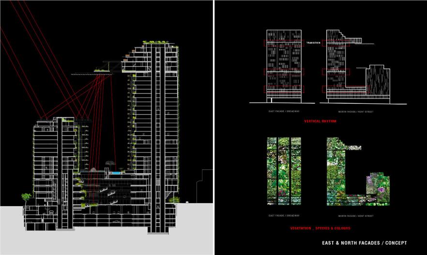 “中央花園”住宅項(xiàng)目由法國(guó)建筑師讓?努維爾設(shè)計(jì)。該項(xiàng)目位于悉尼市一個(gè)釀酒廠舊址上,高116米,是世界上最高的垂直花園。該建筑由兩棟高度分別為16層和33層的住宅塔樓構(gòu)成,聳立在一個(gè)四層高的零售商場(chǎng)之上。這個(gè)綜合項(xiàng)目是和本地設(shè)計(jì)公司PTW Architects合作完成,總共有563間公寓,為位于該城市中心的居民提供了高品質(zhì)生活。