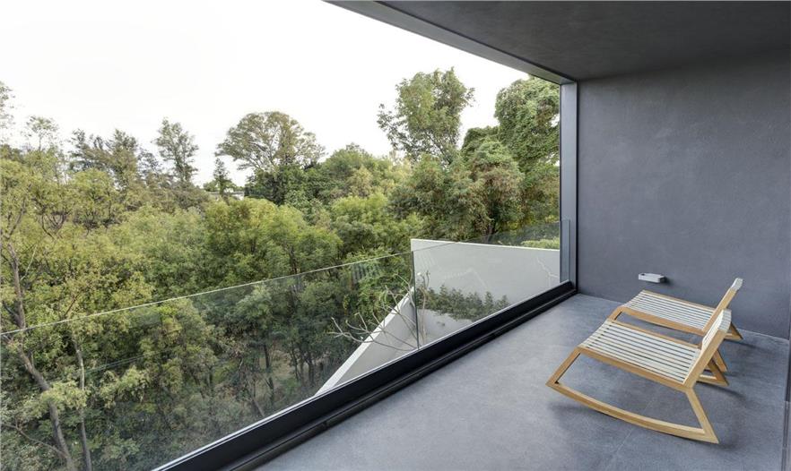 為更深入表達(dá)在一層中用到的獨(dú)具特色的滲透性主題,類似的方案同樣被實(shí)施在二層整個(gè)生活區(qū)中,以留出適宜的私密性空間與開(kāi)放性空間。典型的例子就是便于主浴室通風(fēng)的小玻璃間和為所有臥房讓出開(kāi)闊空間的深嵌的陽(yáng)臺(tái)。