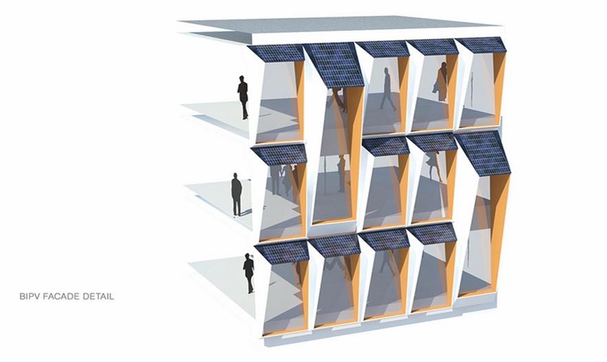 設(shè)計中考慮到了窗墻面積比,以使整個立面獲得55%的透明度。太陽能電池取代了南面和東南面開放區(qū)域的不透明面板,已獲得最合適的直射陽光。