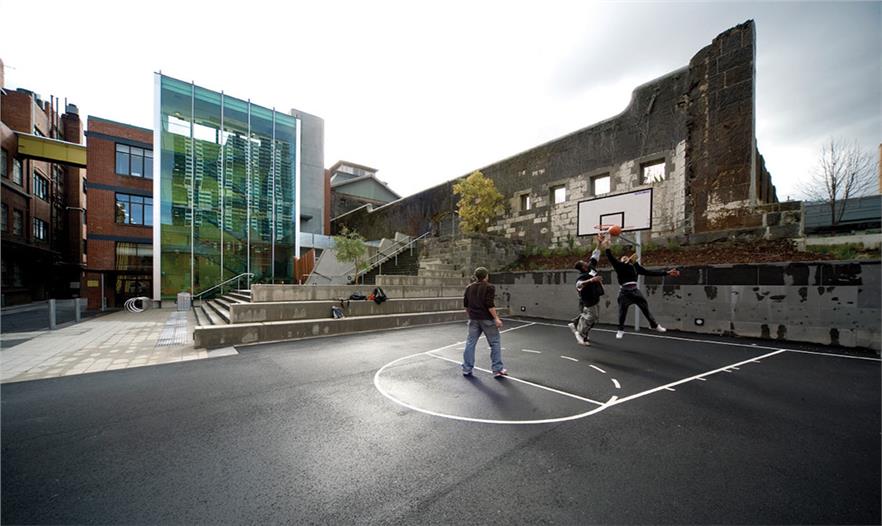 彼得•艾略特建筑和城市設(shè)計事務(wù)所設(shè)計:皇家墨爾本理工大學已經(jīng)漸漸地重建它主要的城市園區(qū),作為建筑和開放空間持續(xù)改造工程中的一部分?;始夷珷柋纠砉ご髮W建于1885年,位于墨爾本中央的斯旺斯頓街末端市政軸線的一個中心位置上?;始夷珷柋纠砉ご髮W已經(jīng)不再是一個城市街區(qū),發(fā)展成為該城市的一個特別區(qū)域。中央園區(qū)之前是與城市沒有任何關(guān)聯(lián)的建筑和廢棄空間集合的區(qū)域。在20世紀90年代,學校開始徹底的改造計劃,建造新穎大膽的建筑,逐漸地重建校園。之前看起來封閉的校園突然之間向外開放,與城市連接了起來。門前和柵欄沿線的汽車被移走了,建造出一個新的且生動的城市環(huán)境。校園的改造工程是在1995年開始的城市空間項目規(guī)劃方案下進行的。這個規(guī)劃重新建造了校園內(nèi)所有的開放空間,按階段進行,花費了15年才完成。